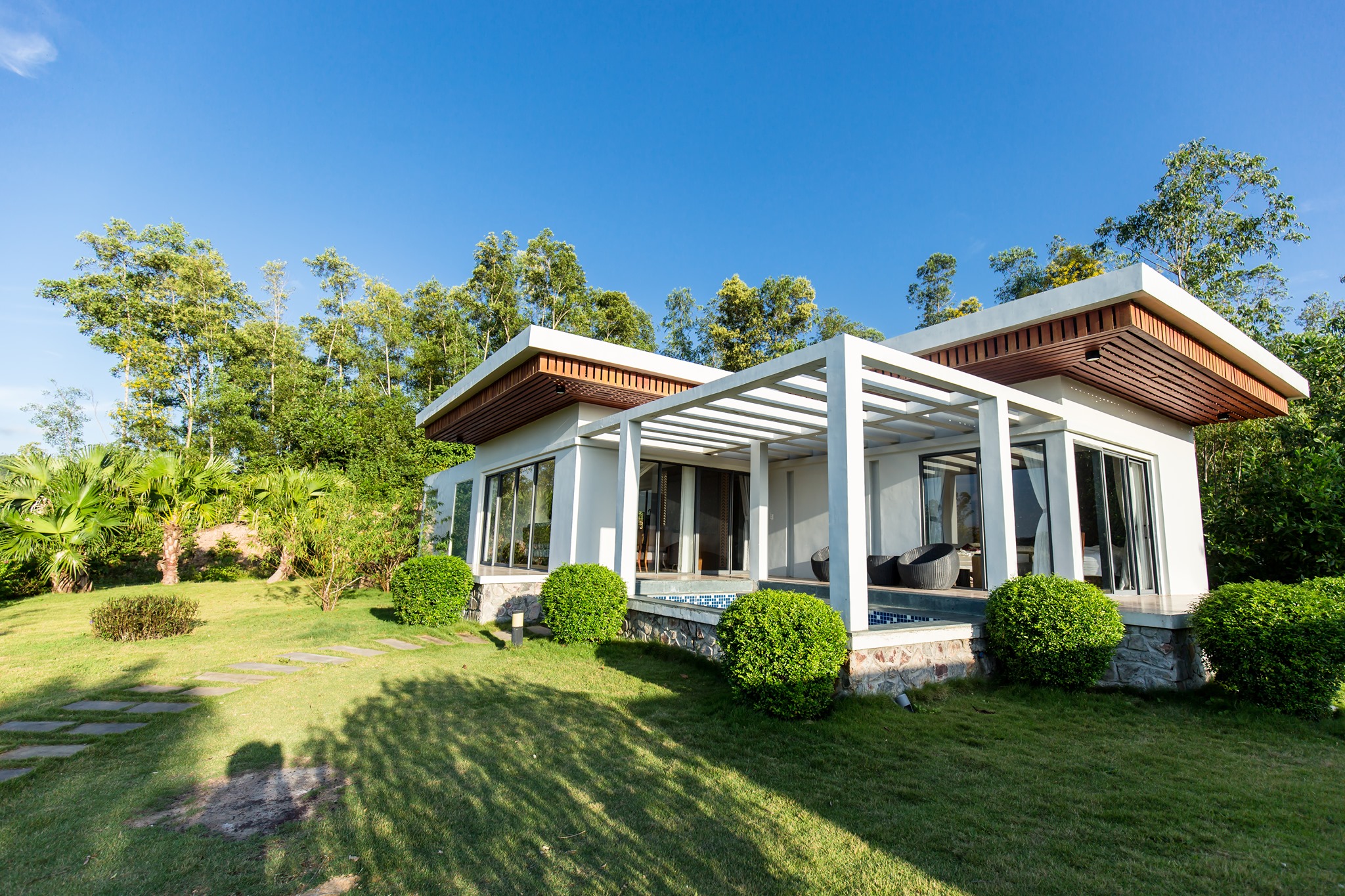고급스러운 대형 욕실에는 욕조와 샤워 부스가 별도로 마련되어 있으며, 어린이용 욕실 용품도 구비되어 있어 가족 모두가 편리하게 이용할 수 있습니다. 넓은 발코니 또는 테라스에서는 아름다운 자연 경관을 바라보며 가족과 특별한 추억을 쌓을 수 있습니다.